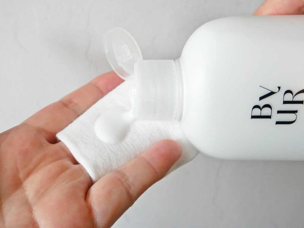 コットンに適量なじませて、肌の上を滑らせるだけでメイクや皮脂汚れをオフ。